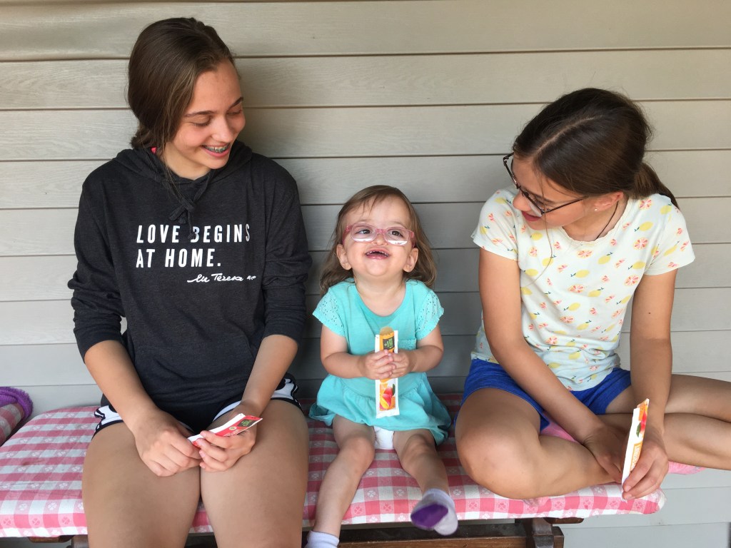 Maggie’s eye exam was first and we went in knowing that patching had improved her eyes tremendously, but her eyes were still pulling in at times. We went in knowing that eye surgery, despite being pulled off the table previously, could be back on the schedule if her eyes were not doing what they needed to do. When our doctor came in to consult she said, “Maggie needs a stronger prescription for her glasses, which is good. If she didn’t need new lenses I would have recommended surgery.” Turns out this latest adjustment with her glasses could help Maggie’s eyes correct themselves. Please Lord!